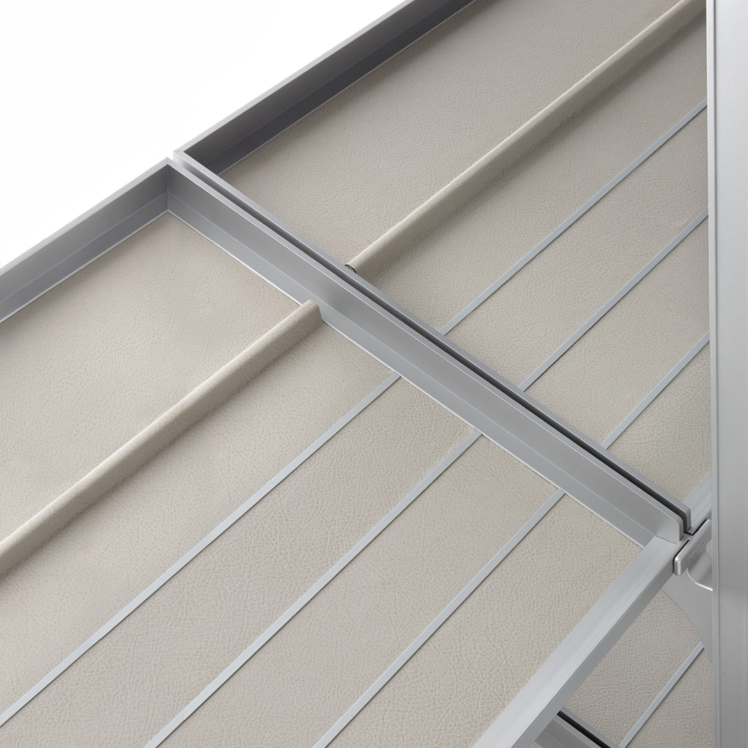 Struktur und Griffe 303 bronzo Rafia, Türen T134 desert, Glas Türen 67 riflettente chiaro, Schuboarde synthetic Leder 157 arena