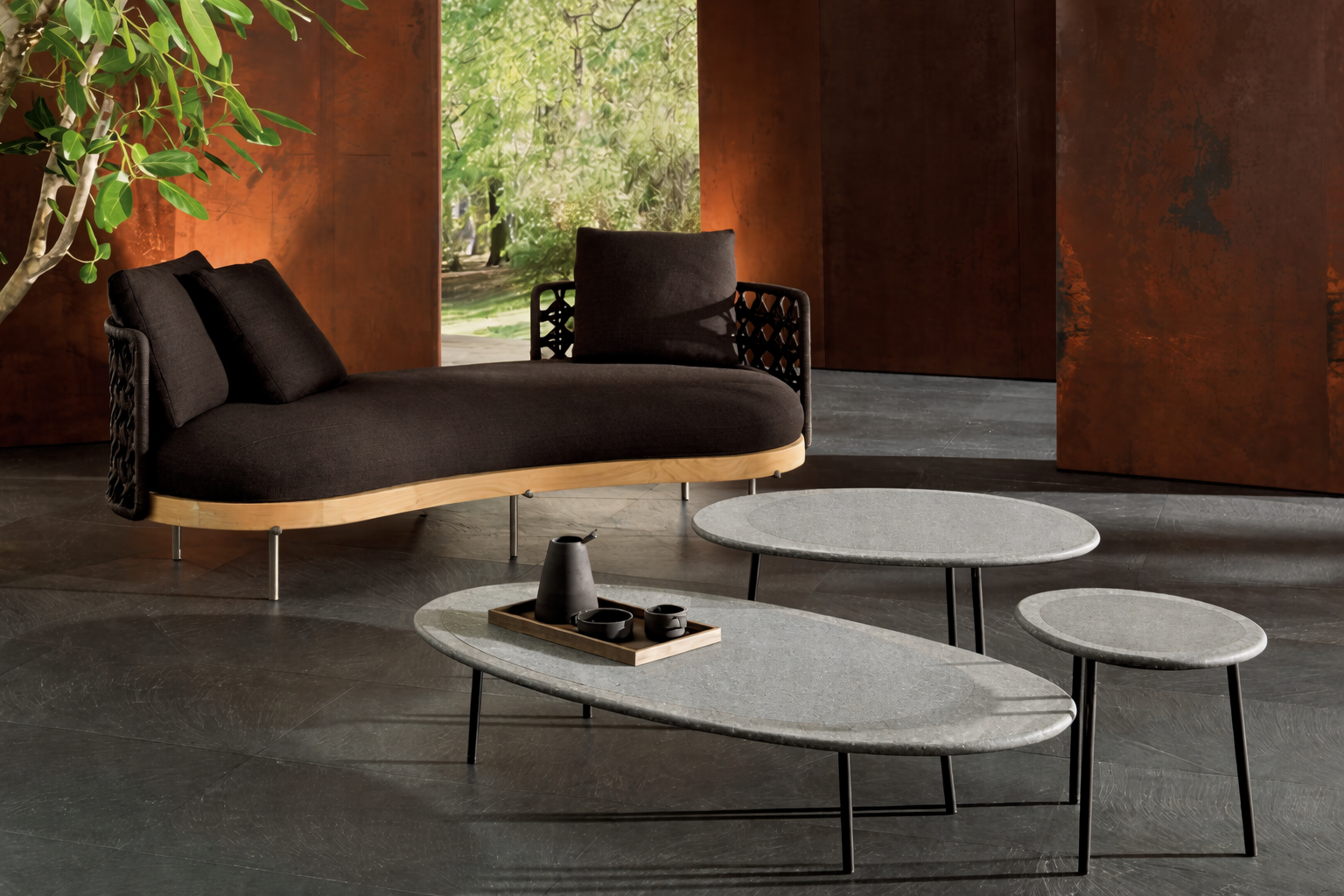 Gestell Metall Peltro, Platte Lavastein Rostbraun